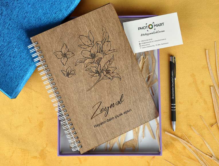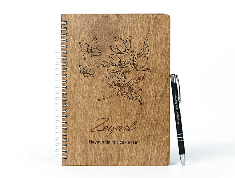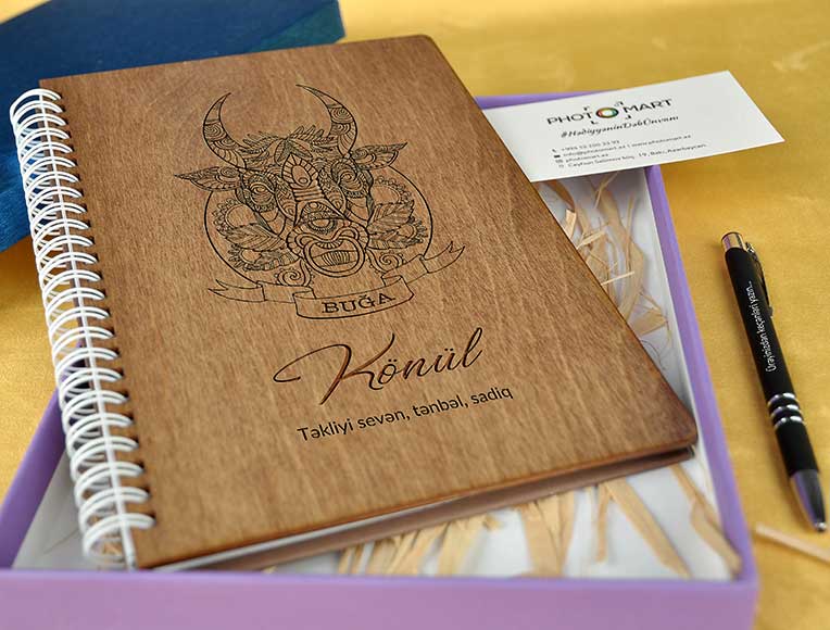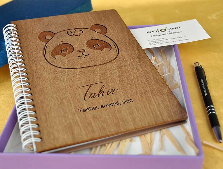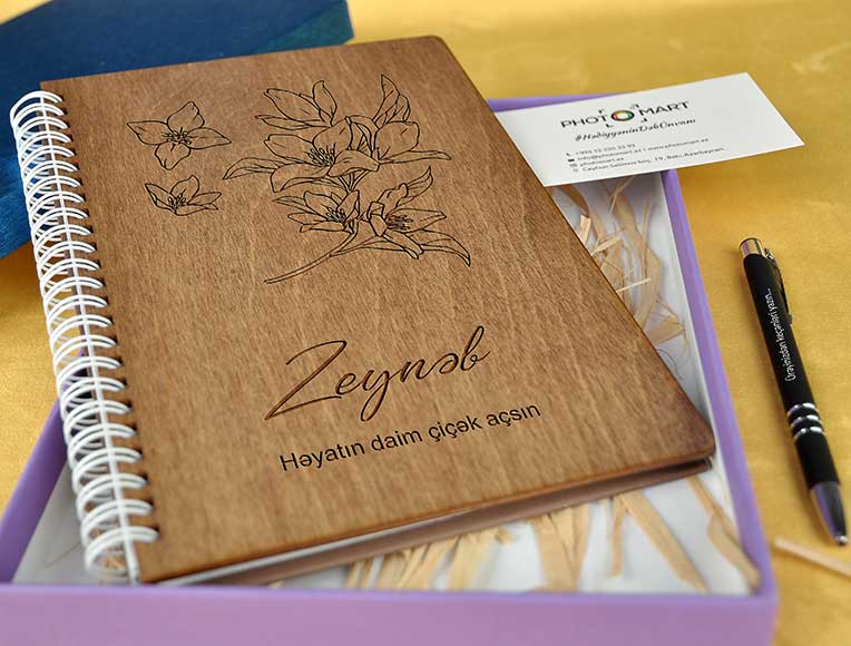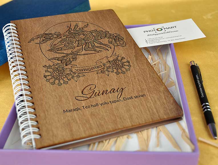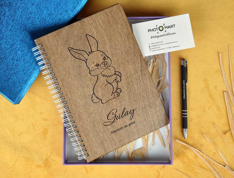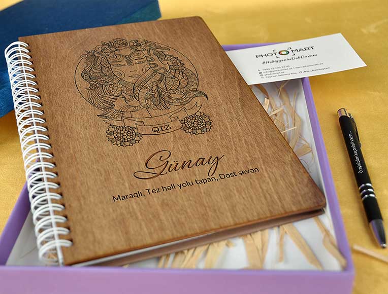 Kapak doğal ahşaptan yapılmıştır, içerisia kareli, 50 yapraklı spirallerle sabitlenmiştir. Üzerine istediğiniz isim, cümleler ve tasarımlar en son lazer teknolojisi kullanılarak yapılır. Aklınıza gelebilecek bütün fotoğraf baskıları yapılabilir. 2-3 iş günü içerisinde hazırlanır ve teslim edilir. Adrese teslimat var.